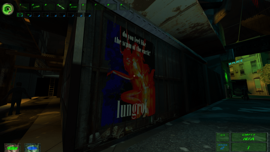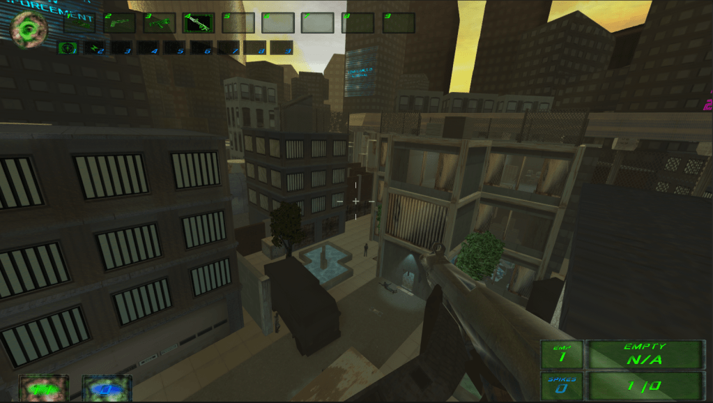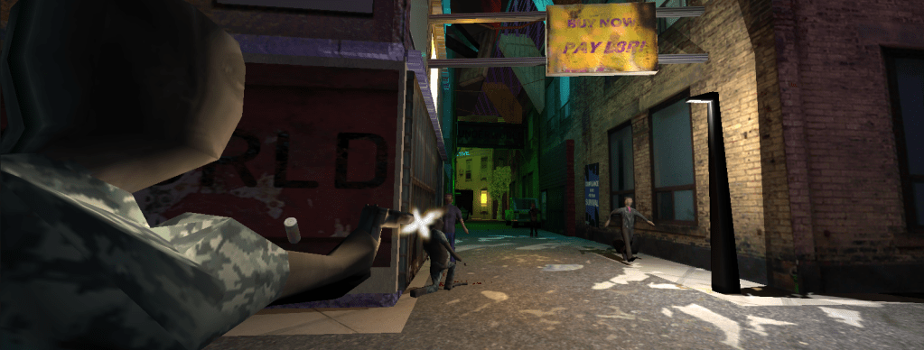 I’m not great at discussing music/sound, but take my word for it that this has improved in PARKSIDE too. I’ve added lots of area ambient sound effects, often randomized, in levels which give a more immersive feel. I also intend to improve on this in the future and add more variety but currently there are sounds like distant conversations, bird chirps, car horns, industrial sounds, etc. that will play in levels.
