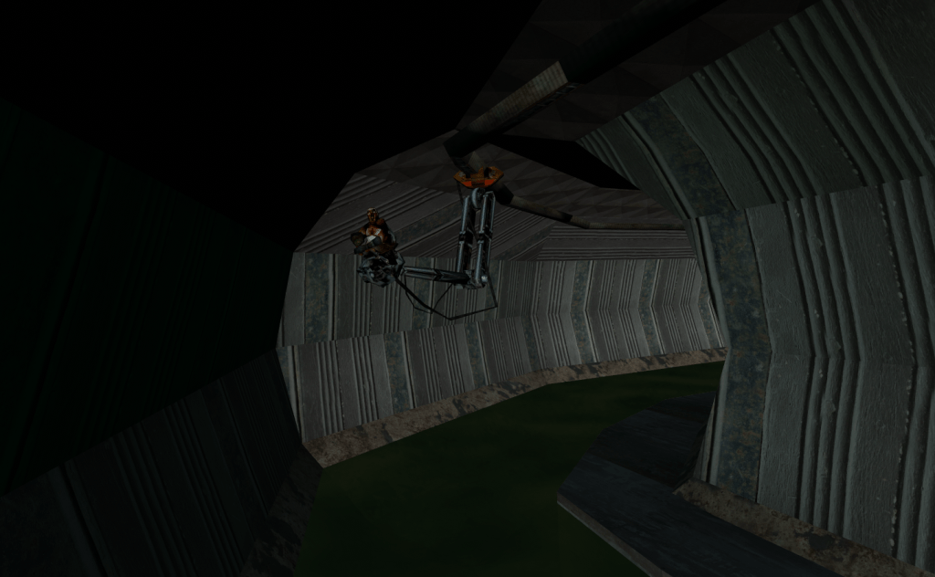#3: Water issues – Swimming is not an easy thing to implement in games in general. It wasn’t getting swimming to work that was problematic for me, but rather an obscure bug where sometimes, if you got out of water, the player would still act in some way as if they were still underwater, or drowning. This applied to scenarios including getting on a ladder out of water, or just having previously been in water and then going elsewhere in the map, to a point lower than the waterline of the water you were previously in, and then you’d start swimming in thin air. It was a combination of a few little bugs that needed squashing.